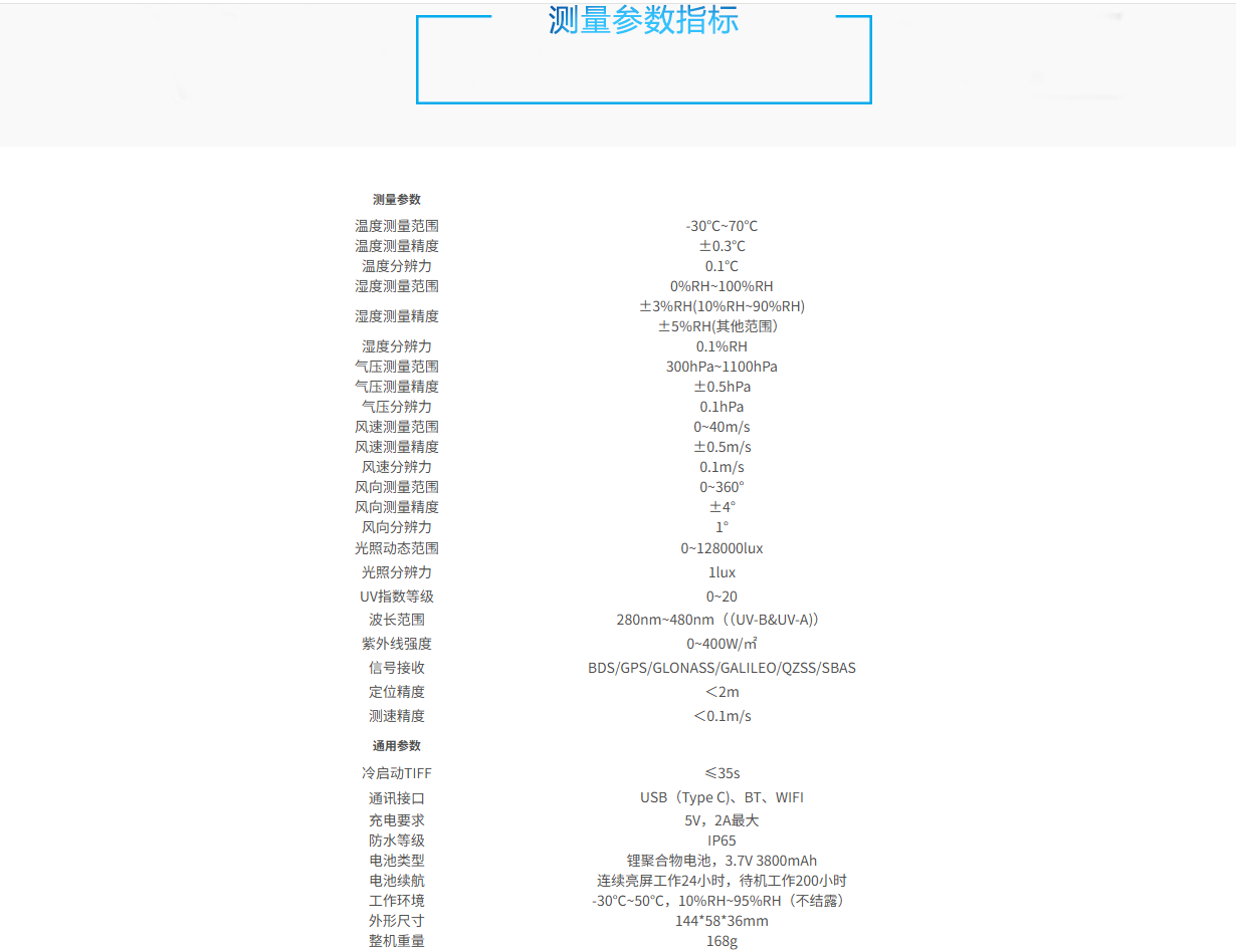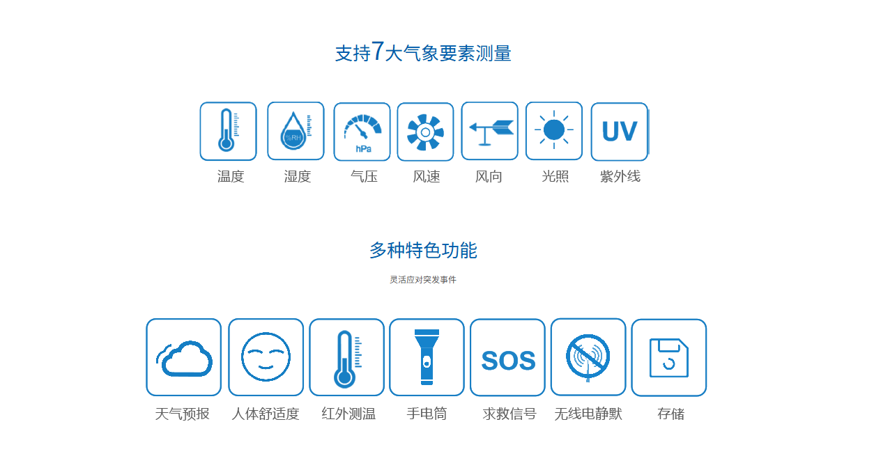 · 测量温度、湿度、气压、风、紫外线和光照等多种要素