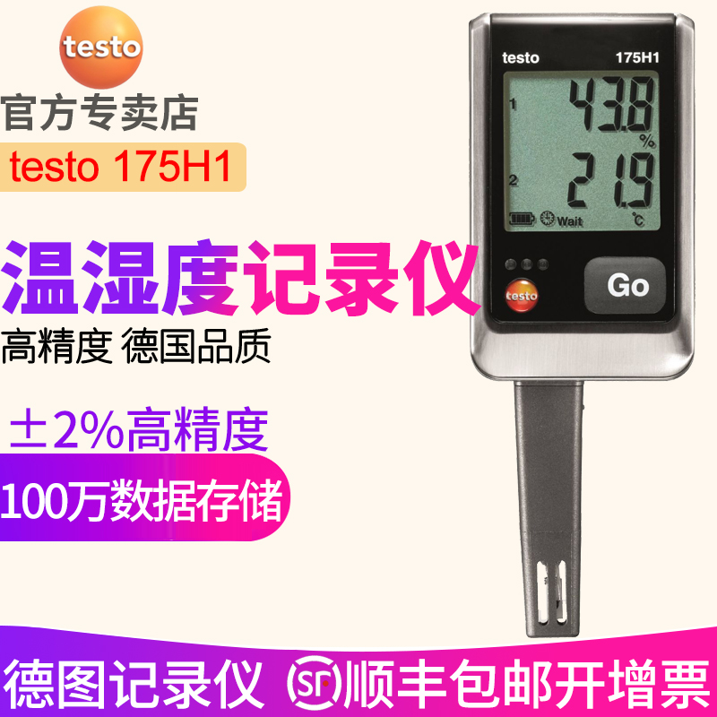 testo 175 H1温湿度2通道数据记录仪,带有外部(NTC/电容式湿度传感器),包含墙面支架、锁、电池和校准记录。
