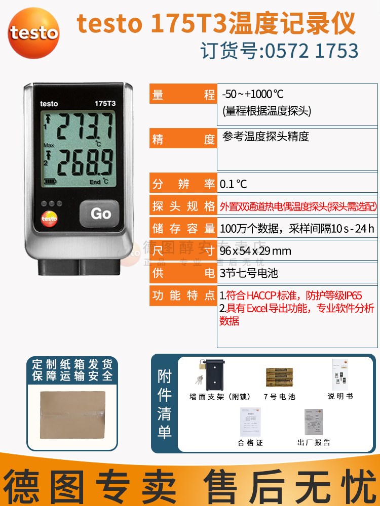 testo 175 T3温度数据记录仪提供极高的数据安全性和完整性,内存中存储的数据即使在电池用尽或更换时也不会丢失。