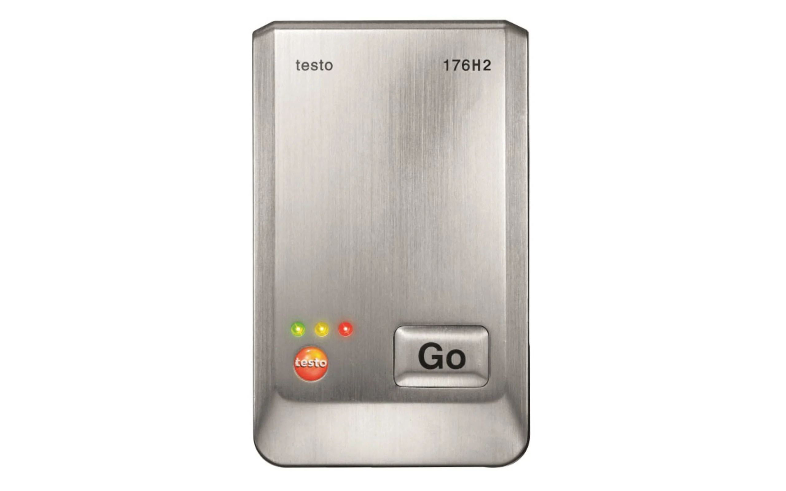 testo 176 H2温湿度记录仪,带2个外接温湿度探头接口 (NTC/电容式湿度传感器),包括墙面安装支架,支架专用锁,电池和出厂报告。